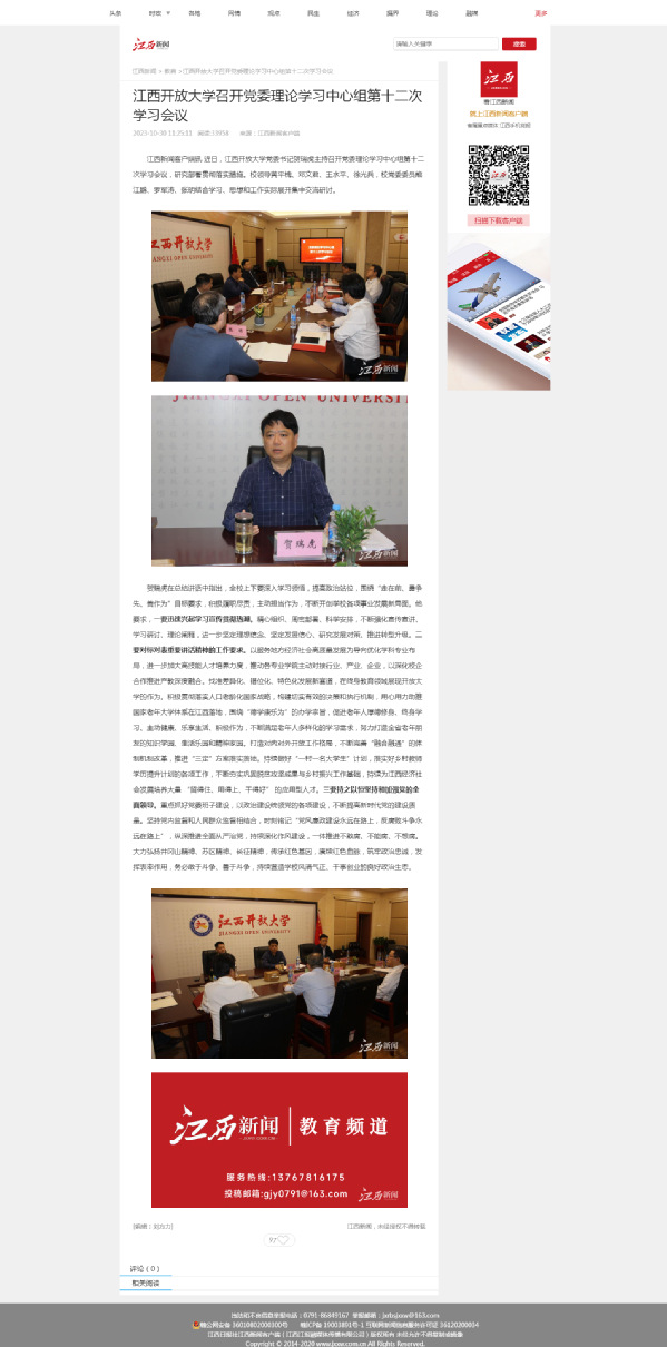 江西新闻:必赢76net线路官网召开党委理论学习中心组第十二次学习会议