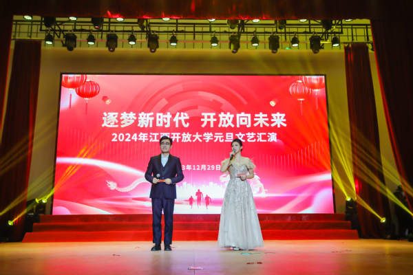 凯歌声声辞旧岁,万象更新焕新颜。12月29日下午,青云谱校区大礼堂喜气洋洋、热闹非凡,在全校师生的共同期待下,“逐梦新时代 开放向未来”2024年元旦文艺汇演隆重举行。省人大常委会、省人大教育科学文化卫生委员会副主任委员、必赢76net线路官网原党委书记易小明应邀出席。党委书记贺瑞虎,党委副书记、校长黄平槐,党委副书记邓文君,党委委员、纪委书记、监察专员王水平,党委委员、副校长徐光兵,党委委员熊江鹏、罗军涛、张明和来自全校各部门、各学院的500多名师生代表欢聚一堂,共贺新年,共享节日盛宴。文艺汇演通过学校公众号同步进行线上直播,近6000名师生及学生家长在线观看。