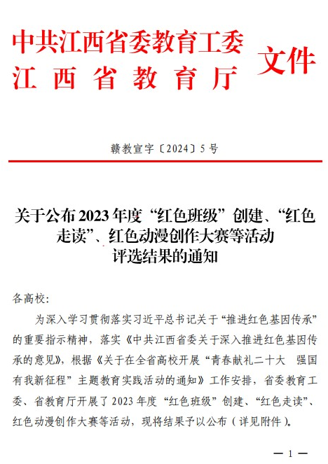 近日,省委教育工委、省教育厅公布了2023年度“红色班级”创建、“红色走读”和红色动漫创作大赛等活动评选结果。学校报送的作品《传承红色基因,致敬将军农民》被评为“红色走读”优秀“云游”作品。