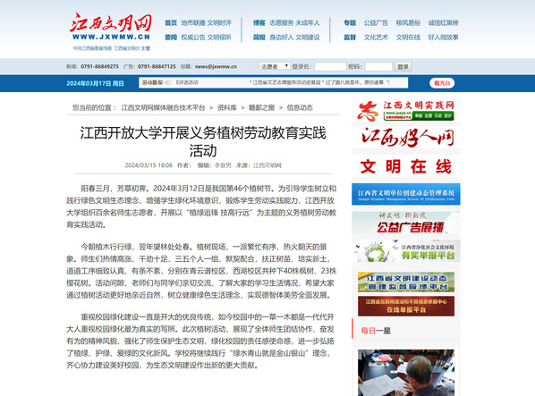 阳春三月,芳草初霁。2024年3月12日是我国第46个植树节。为引导学生树立和践行绿色文明生态理念,增强学生绿化环境意识,锻炼学生劳动实践能力,必赢76net线路官网组织百余名师生志愿者,开展以“植绿追锋 技高行远”为主题的义务植树劳动教育实践活动。