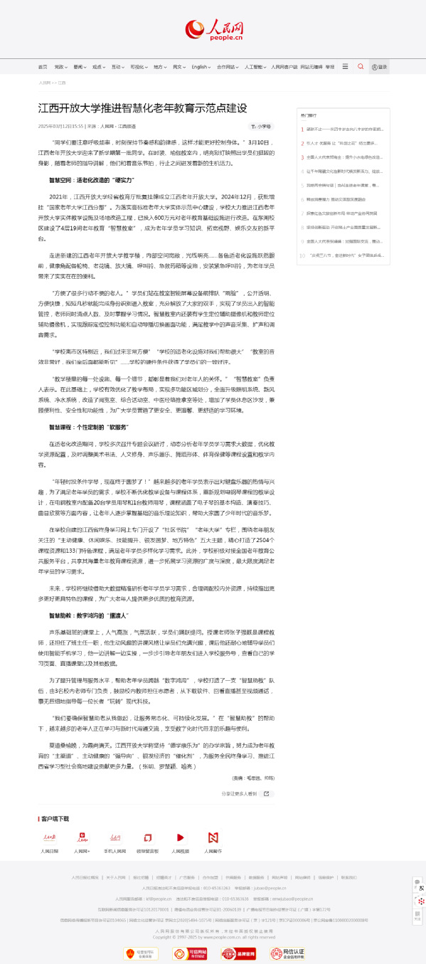 人民网:必赢76net线路官网推进智慧化老年教育示范点建设