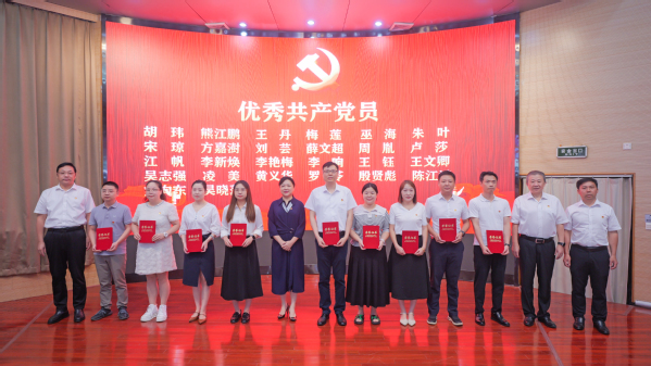 我志愿加入中国共产党,拥护党的纲领,遵守党的章程,履行党员义务……”表彰大会上,邓文君带领在场党员重温入党誓词,党员们面向党旗、高举右拳,让红色基因在铮铮誓言中焕发新的时代光芒。