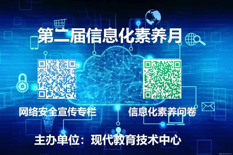 为深入贯彻习近平关于提高全民全社会数字素养和技能,提升我校教职工信息素养,助力构建“互联网+”教育,现代教育技术中心于9月7日开始开展必赢76net线路官网第二届信息化素养月活动。为充分了解教职工信息化技能方面的学习需求,我中心首先在全校开展信息化素养问卷调查,然后在部门网站分享科普知识点。接下来,我中心将继续开展系列线下知识宣传活动,举办信息技能培训,开展技能竞赛,为全校教职工提供信息技能学习、交流的窗口和平台。