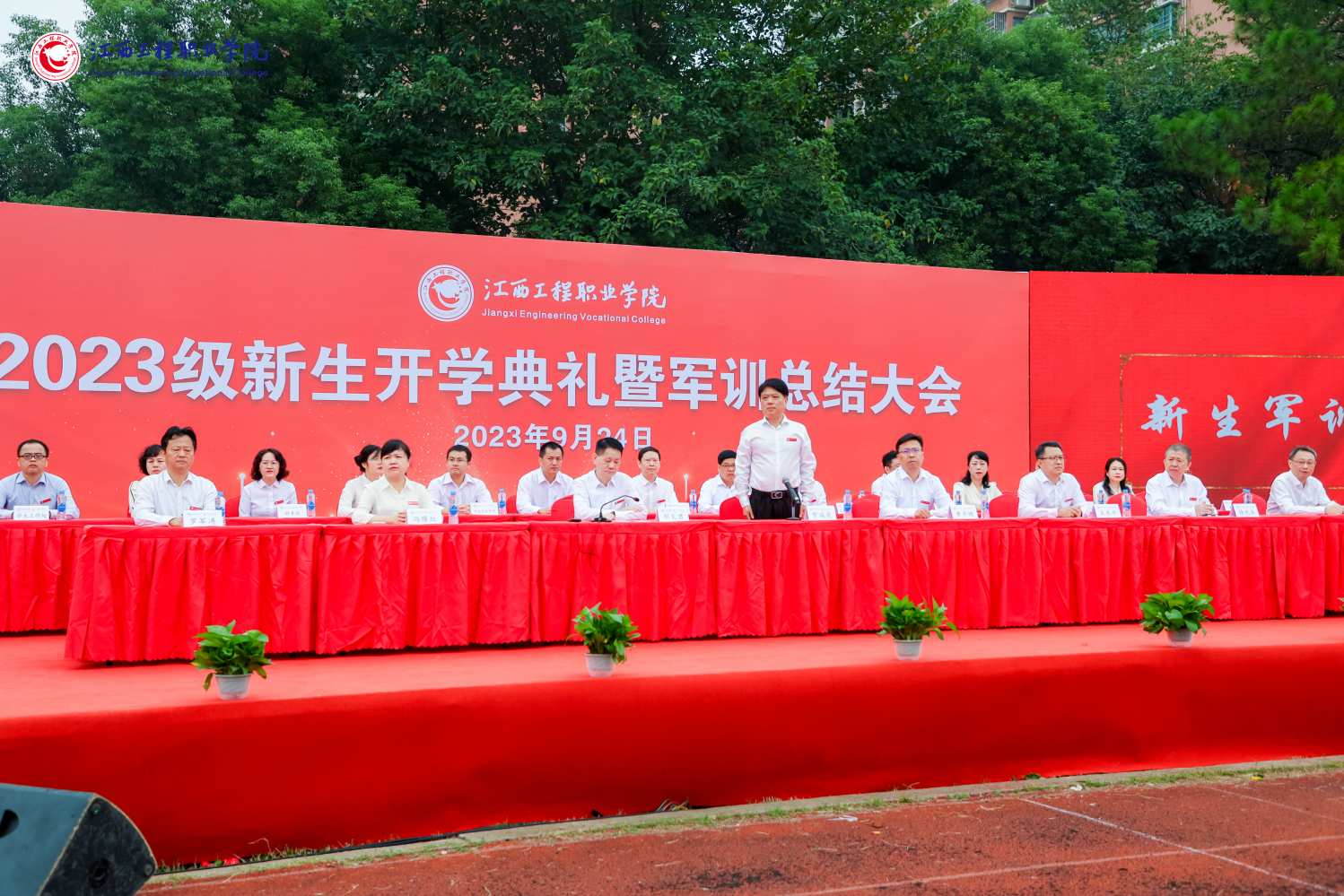 金秋九月,江西工程职业学院迎来了1908名2023级新同学。9月24日上午9时,学校2023级新生开学典礼暨军训总结大会在必赢76net线路官网(江西工程职业学院)西湖校区运动场隆重举行。校党委书记贺瑞虎,校党委副书记、校长黄平槐等校领导,各专业学院党政负责人,学校相关部门的负责人和新生辅导员到场观礼。