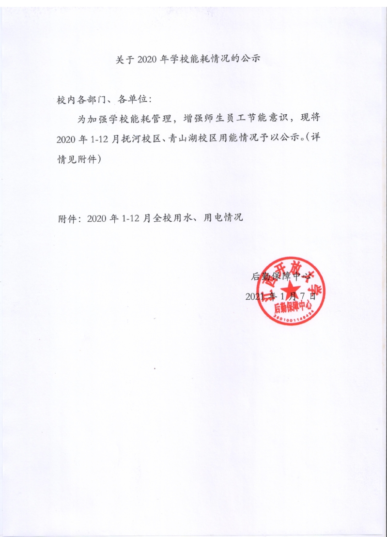 关于2020年学校能耗情况的公示
