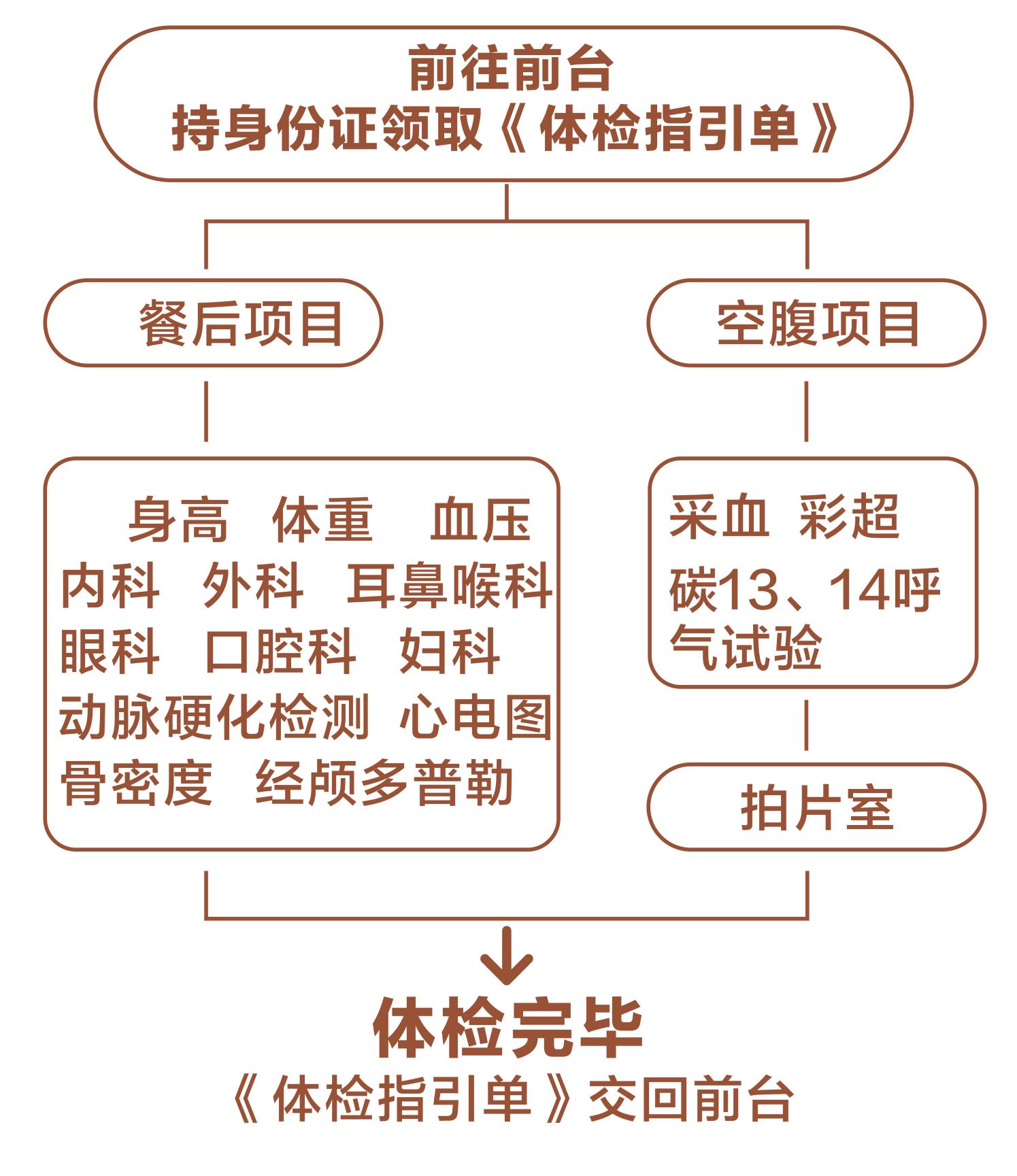 2、体检的空腹项目有:抽血化验、肝胆脾胰双肾彩超、呼气试验等,完成空腹项目后可先行用餐(体检科餐厅提供免费营养早餐如鸡蛋、肉包、牛奶、豆浆等),再继续完成其他体检项目。也可完成所有体检项目后再用餐。