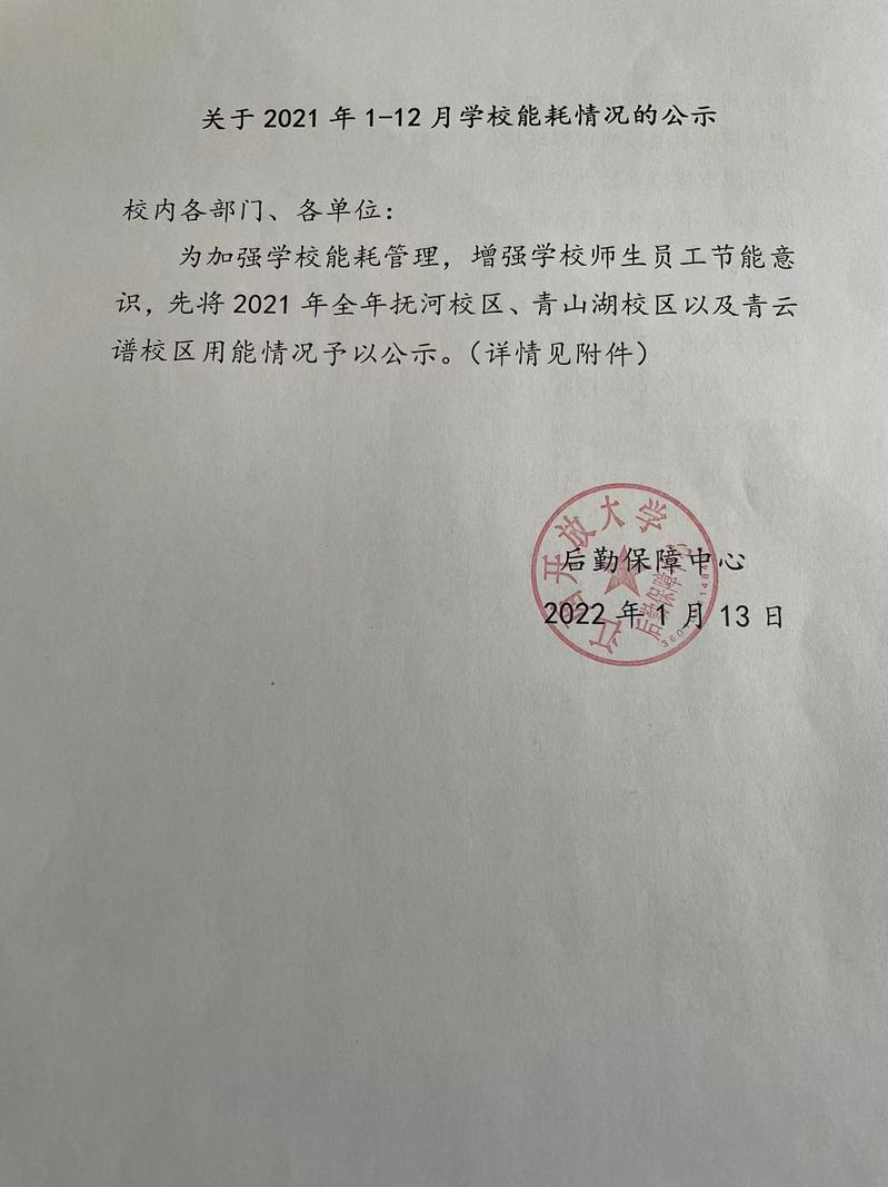 关于2021年学校全年能耗情况的公示