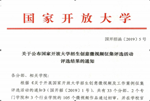 新余电大荣获“国家开放大学招生创意微视频大赛”优秀奖