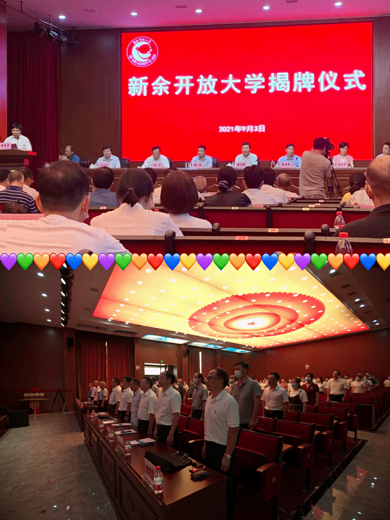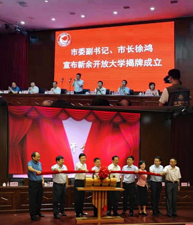 仲秋的渝钤大地,秋风送爽、硕果累累。 8月24日,新余市人民政府批准江西广播电视大学新余市分校正式更名为新余开放大学。9月3日,新余开放大学揭牌仪式在彩旗招展、喜庆祥和的新余电大院内市民学习中心报告厅举行。
