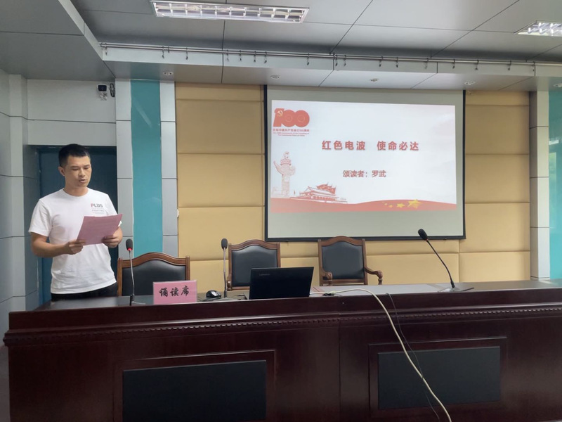 朗诵者罗武说:“我今天诵读的内容是《红色电波 使命必达》,这篇红色故事讲述了我们党当年从长征出发地渡口过江,为了避免发电机、发报机浸水,红军战士们头上迎着敌人的炮火,脚下浸着冰冷的湘江水,哪怕自己受伤了也一定要保护好机器,托着机器过江的艰辛历程,颂出了中国共产党人信仰的丰碑。我曾在部队服役十二载,就是一名无线电战士,今年响应党的号召,读了许多关于党史的书籍,很受教育和启发。今天朗诵这个故事是为了纪念段艰辛而又光辉的岁月,激发我们接续奋斗的信心和力量。