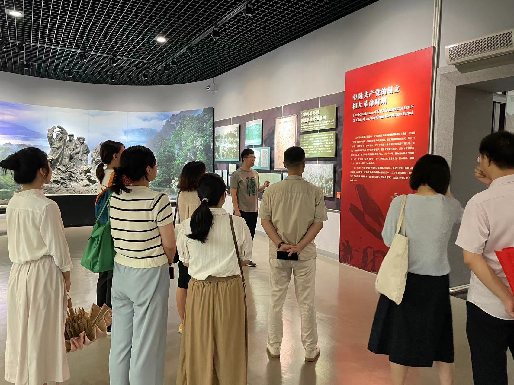 在革命烈士纪念堂的一楼大厅里,全体党员庄严举起右手,紧握拳头,重温入党誓词。全体党员再一次深切体会到作为一名共产党员的责任感和使命感。